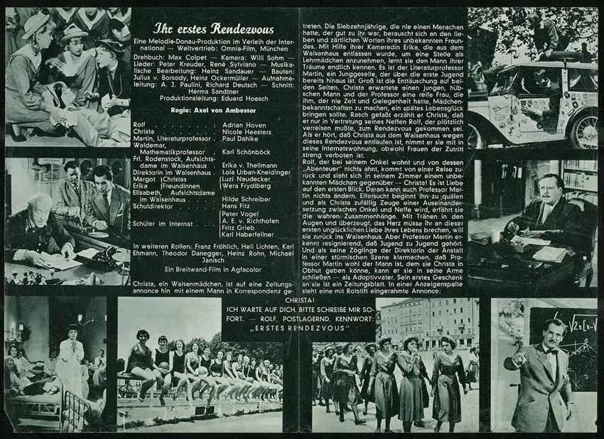 Filmprogramm Programm von Heute Nr. 388, Ihr erstes Rendezvous, Adrian Hoven, Nicole Heesters, Regie: Axel von Ambesser