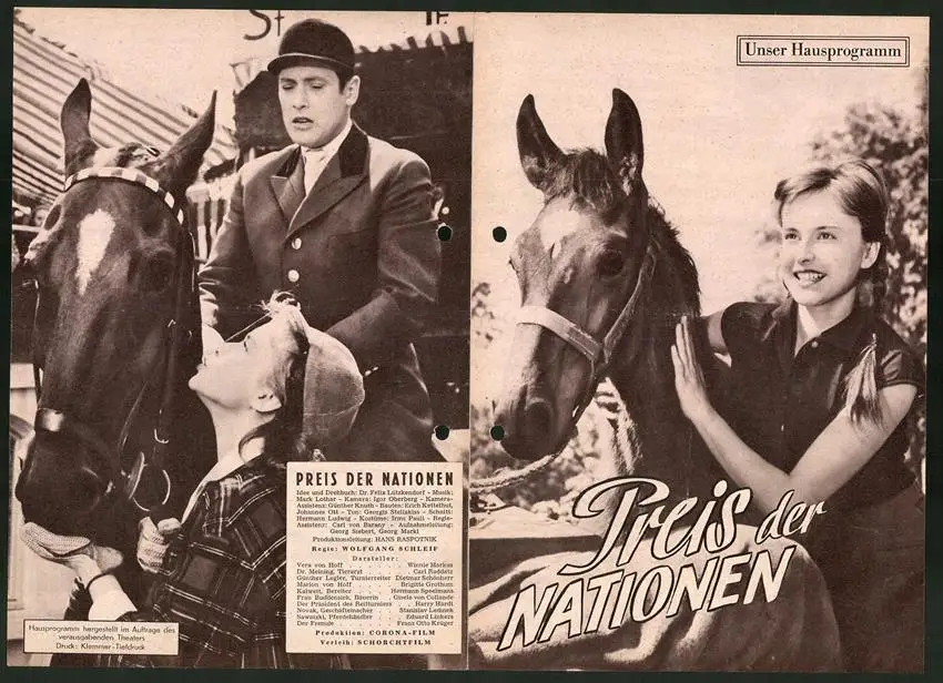 Filmprogramm Unser Hausprogramm, Preis der Nationen, Winnie Markus, Carl Raddatz, Regie: Wolfgang Schleif