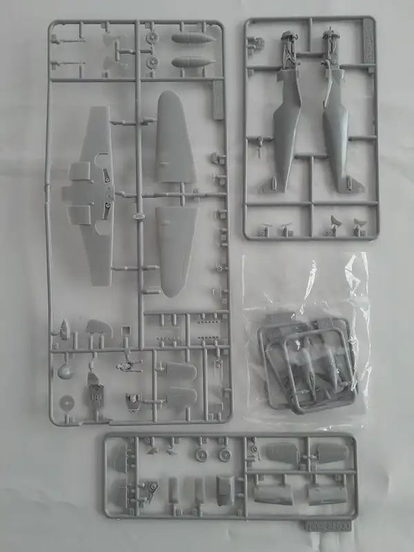 Einzelteile (Plastikbauteile) sind noch am Rahmen fixiert. Sichthülle wurde geöffnet.