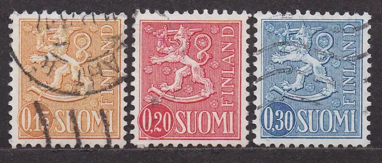 Finnland, Mi-Nr. 558 x I, 559 x I + 561 x I gest., Wappenlöwe