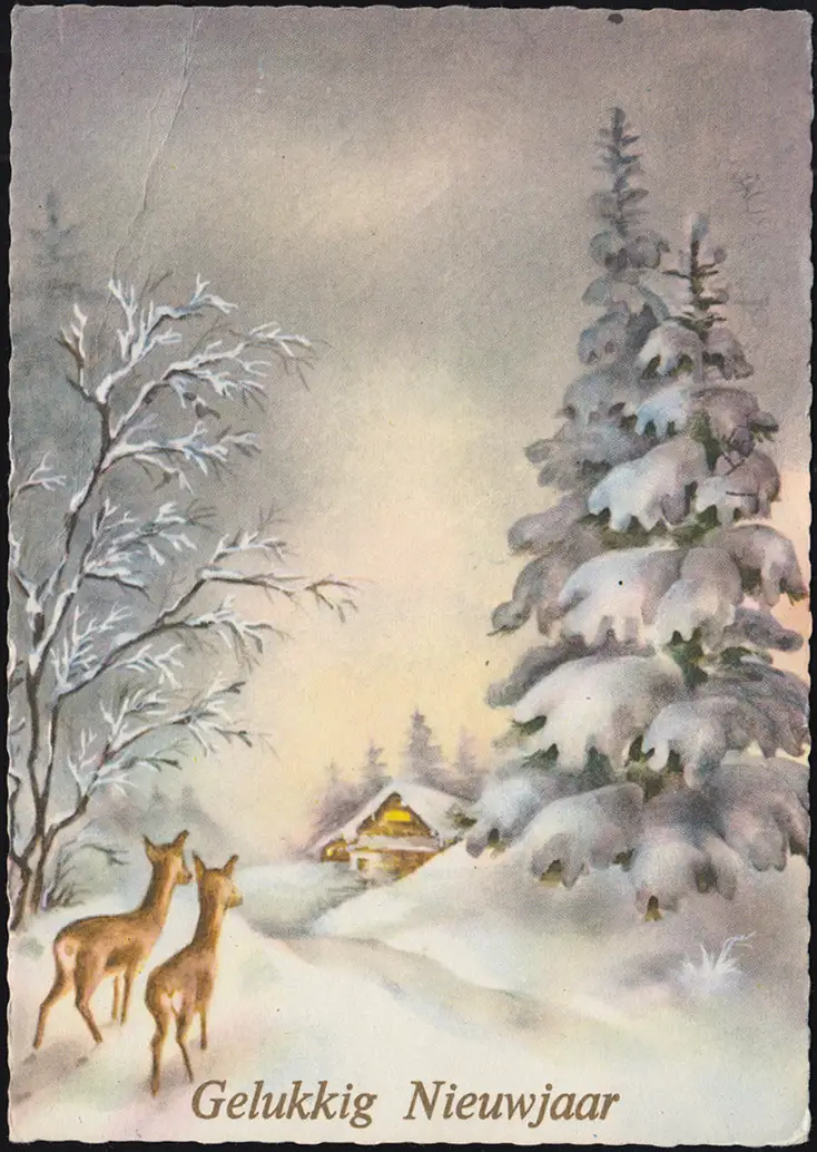 Ansichtskarte "Gelukkig Nieuwjaar", mit Werbestempel VOOR HET KIND