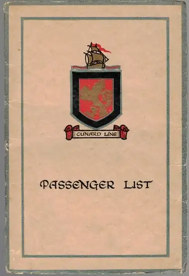 Titel: First Class Passenger List. R.M.S. "Mauretania". Sailing from Southampton to New York (via Cherbourg). Saturday, 22nd June 1929