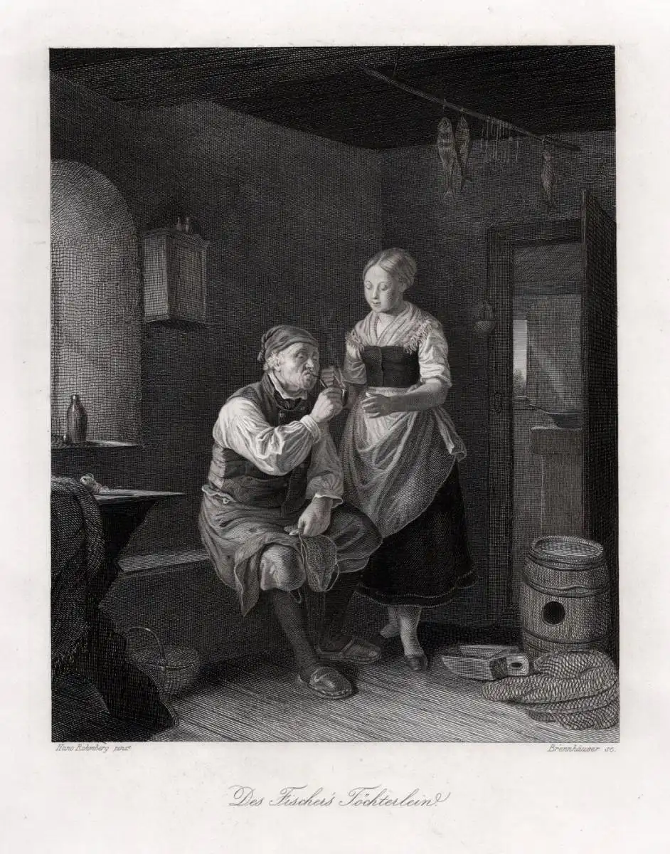 Fischers Töchterlein. Originaler Stahlstich, gestochen von Brennhäuser um 1850
