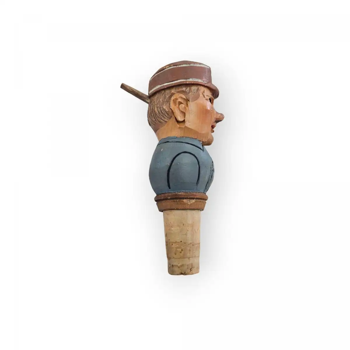 Flaschenstöpsel Korken handbemalte und geschnitzte Figur mit Bewegung
