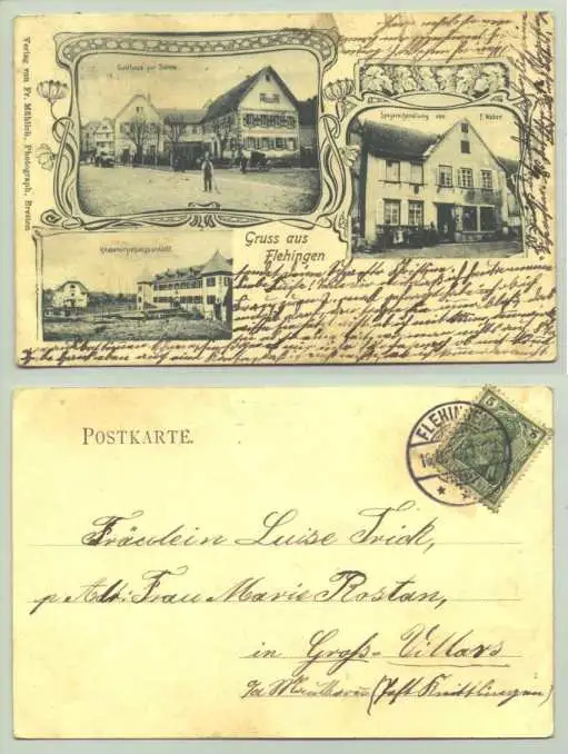 Artikelbeschreibung u. Zustand : Siehe Scan. Weitere Infos : Ansichtskarte. Gruss aus Flehingen (Gasthaus z. Sonne, Knabenerziehungsanstalt, Geschaeft F. Weber). PLZ-Bereich pauschal 75038. Postalisch gelaufen 1914