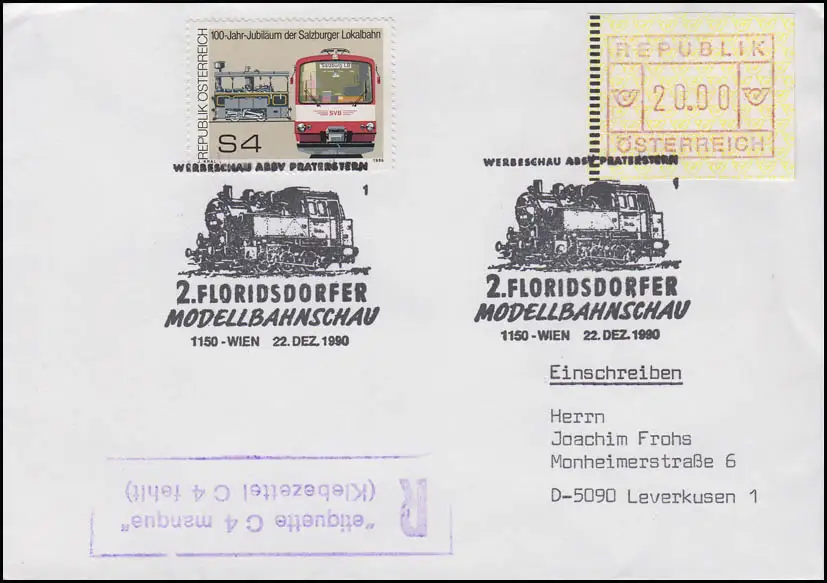 Floridsdorfer Modellbahnschau Not-R-Stempel Klebezettel fehlt SSt Wien 22.12.90