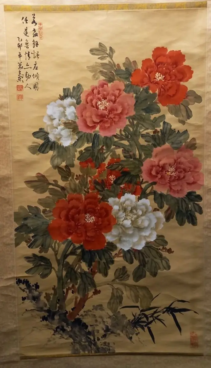 Bemerkungen: Chinese silk hanging scroll with Peony-Flower-Bouquet and an unknown artist seal.