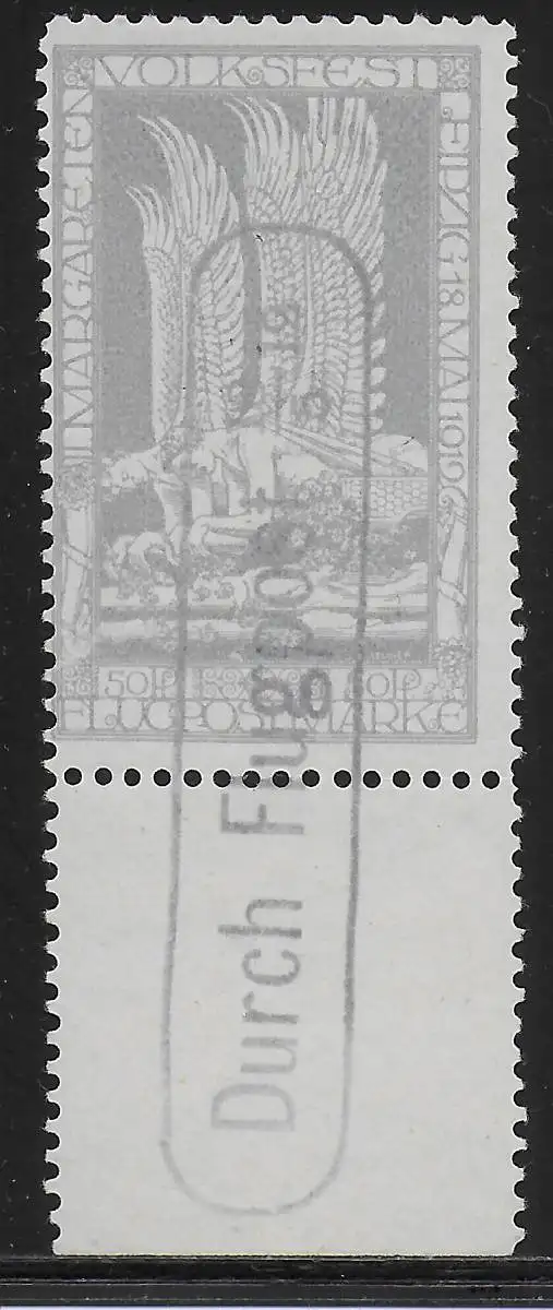 Flugpostmarke Leipzig Volksfest 1912 mit Unterrand, gestempelt, MiNr. 4a