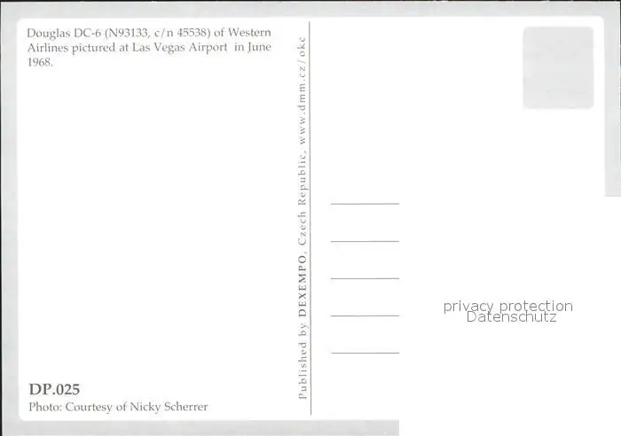 Flugzeuge Zivil Western Airlines Douglas DC-6 N93133 c/n 45538 Airplanes Avions postalisch nicht gelaufen 1968 Alte Ansichtskarte Postkarte Salvotta