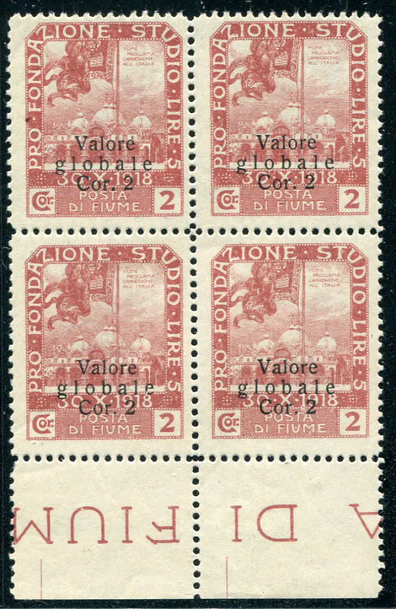 Fluss - Gesamtwert 2 C. auf 2 C. verschobener Aufdruck 2 Vollgummi - MHN - - - Fluss - Gesamtwert 2 C. auf 2 C. Nr. 96 Viertel b. von f. stark nach unten verschobener Aufdruck - Sorte nicht katalogisiert Cod. 1119/14