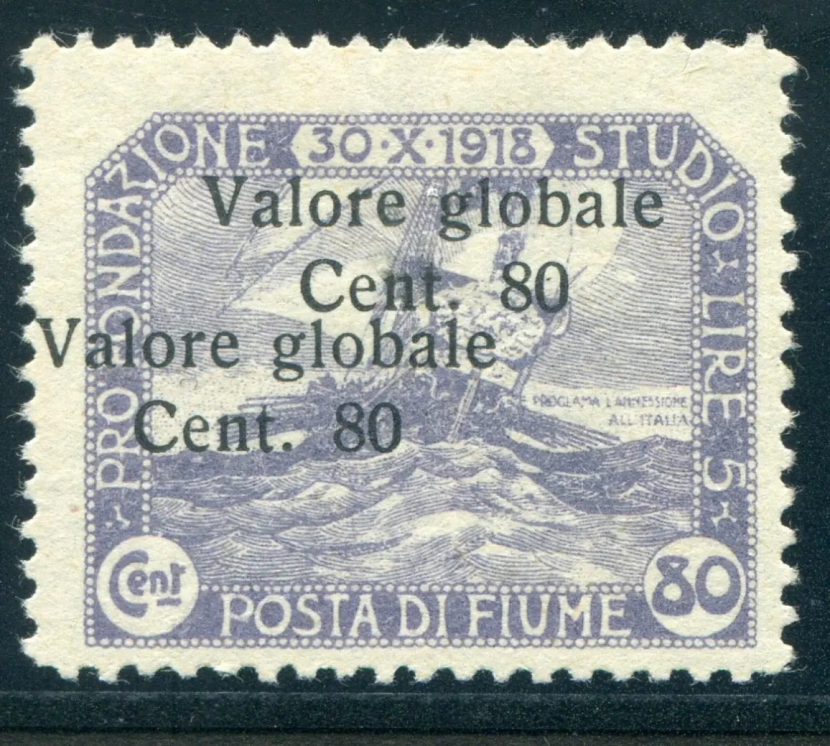Fluss - Gesamtwert Cent. 80 lila Nr. 94ca Doppeldruck davon einer stark nach links verschoben - Kat. euro 200 Cod. 904/11