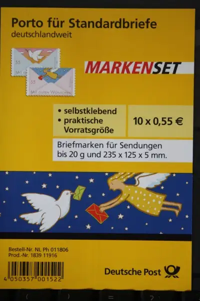 Folienblatt FB-MiNr. 12; Markenset, Grußmarken: Taube/Engel