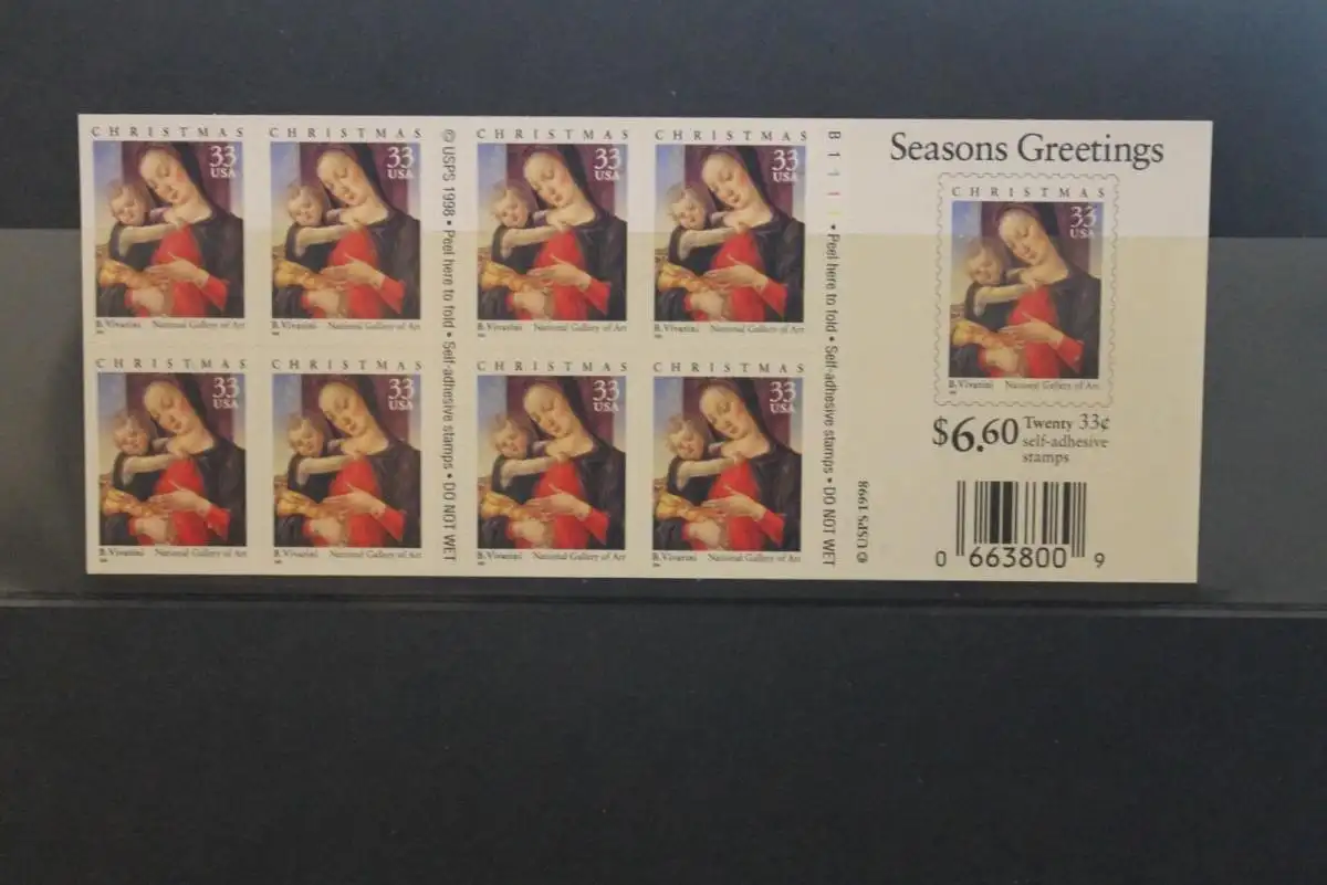 Folienblatt Seasons Greetings; Madonna mit Kind, 1999, 33 C); MiNr FB 60; MNH