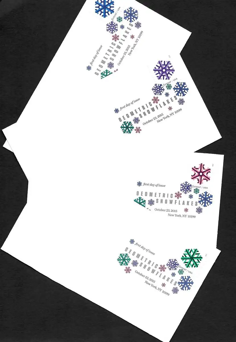 Forever USA 2015: Geometric Snowflakes, New York, 4x FDC
