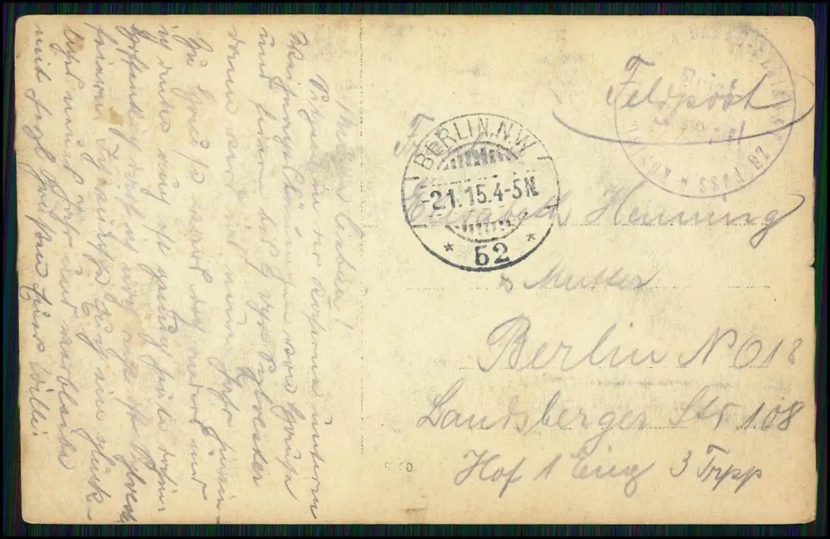 Foto AK 1. WK - Soldaten in Berlin - Regiment zu Fuß - 1915 Feldpost gelaufen