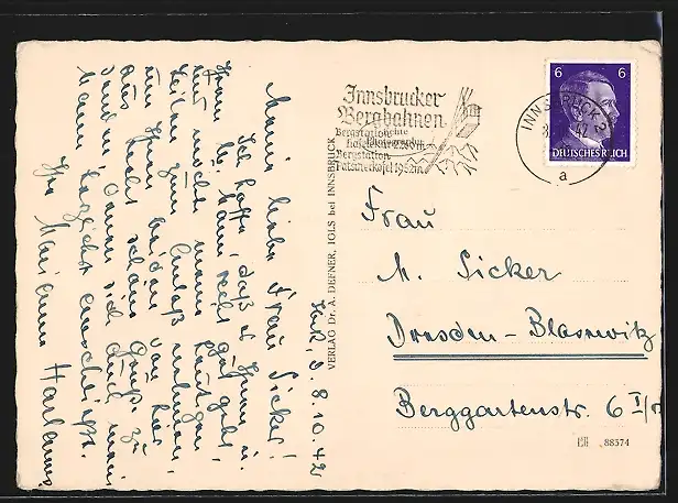 alte Ansichtskarte, gelaufen 1942, guter Zustand