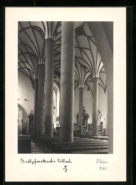 Foto-AK Adalbert Defner: Villach, Stadtpfarrkirche, Innenansicht