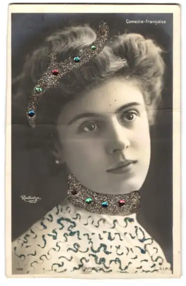 Foto-AK Atelier Reutlinger, Paris: Comedie-francaise, hübsche Dame mit Glitzerperl-Schmuck