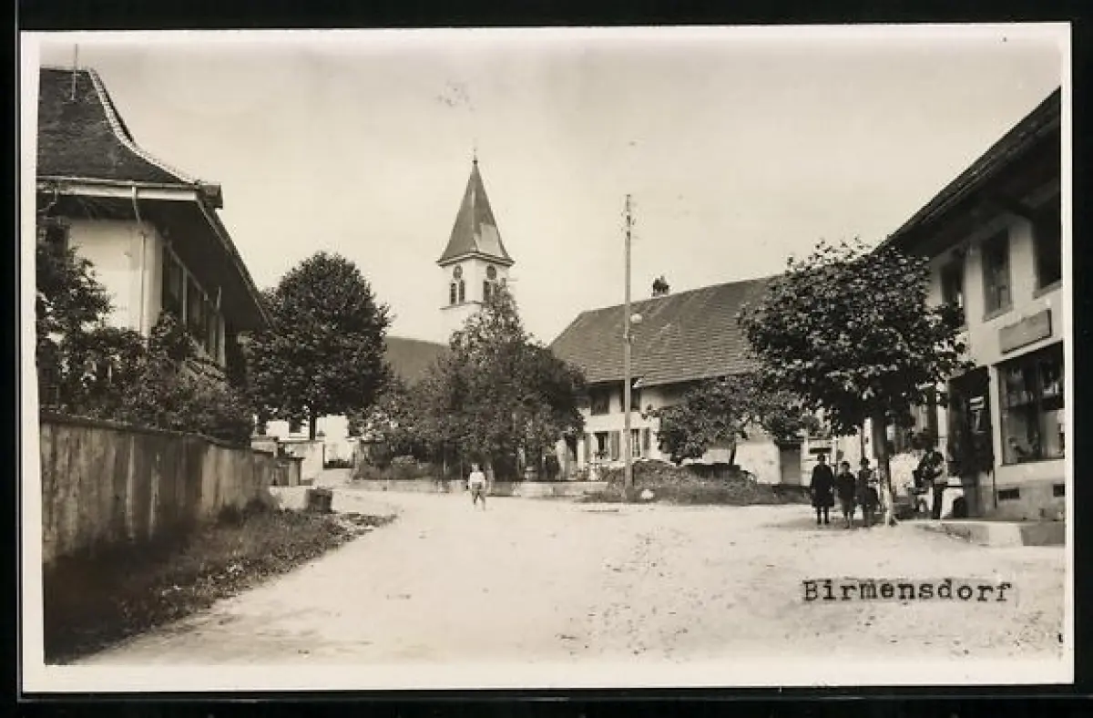 Foto-AK Birmensdorf, Strassenpartie mit Blick zur Kirche