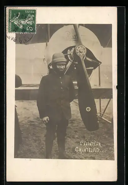 Foto-AK Chanteloup, Pilot mit Flugzeug
