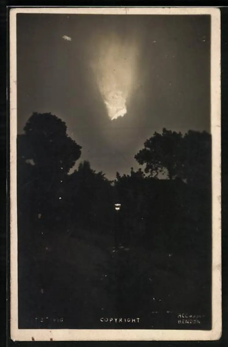 Foto-AK Deutscher Zeppelin wird 1916 brennend abgeschossen