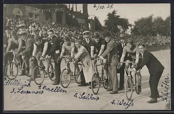 Foto-AK Dresden-Reick, Radrennbahn Liebstädter Strasse, Beginn eines Rennens