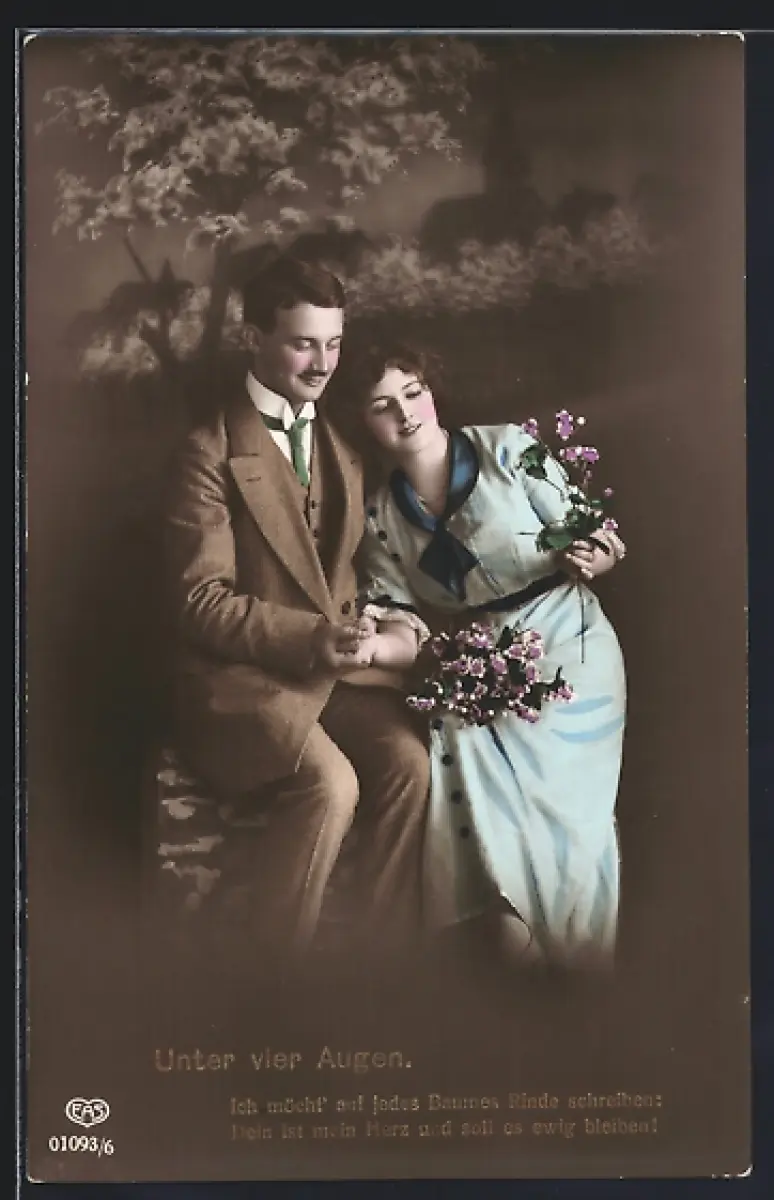 Foto-AK EAS Nr. 01093/6: Unter vier Augen, Ich möcht` auf jedes Baumes..., Liebespaar