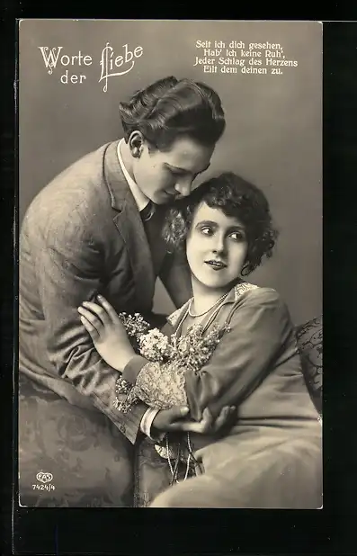 Foto-AK EAS Nr. 7424 /4: Junger Mann mit seiner Ehefrau im Arm