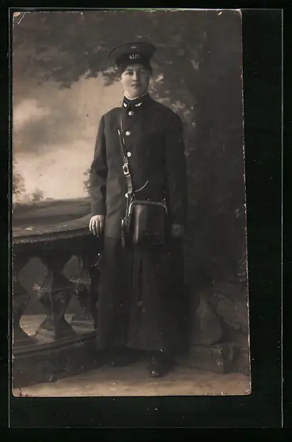 Foto-AK Eisenbahn oder Strassenbahn-Schaffnerin in Dienstkleidung
