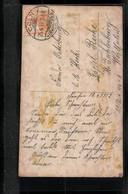 alte Ansichtskarte, gelaufen 1917, rückseitig Klebe- und Papierreste, Eckknick li. oben, guter Zustand