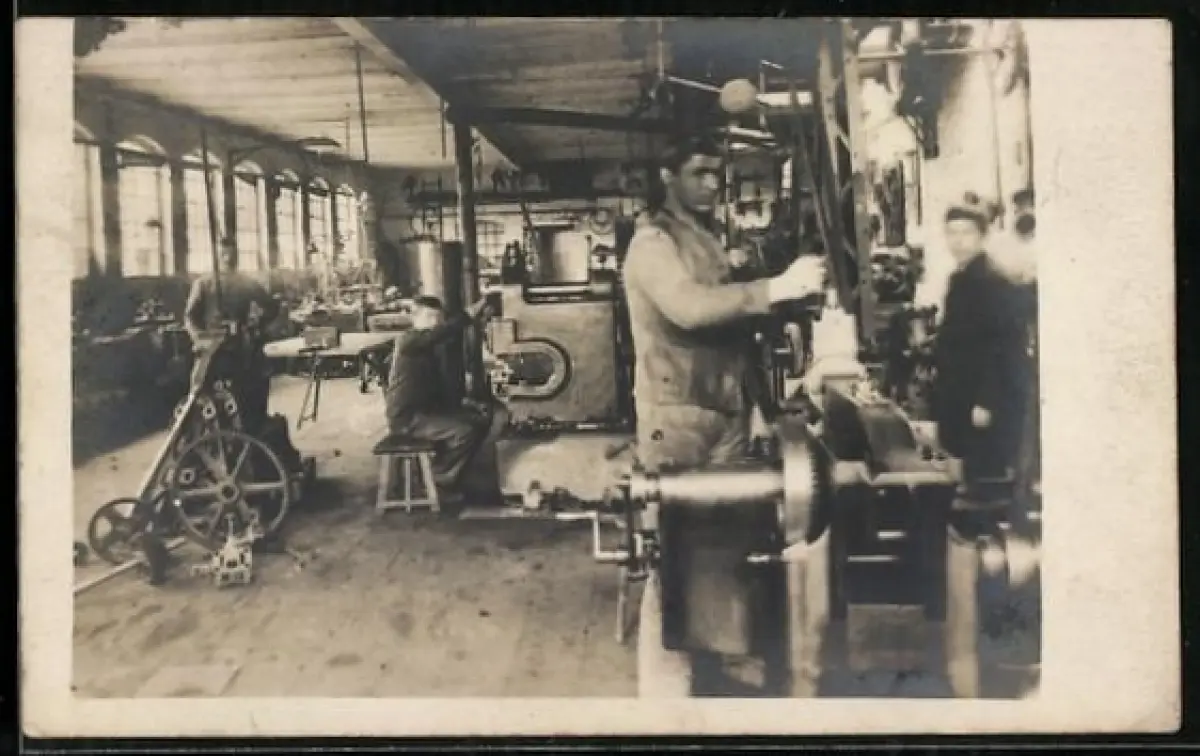 Foto-AK Fabrikarbeiter bei der Arbeit