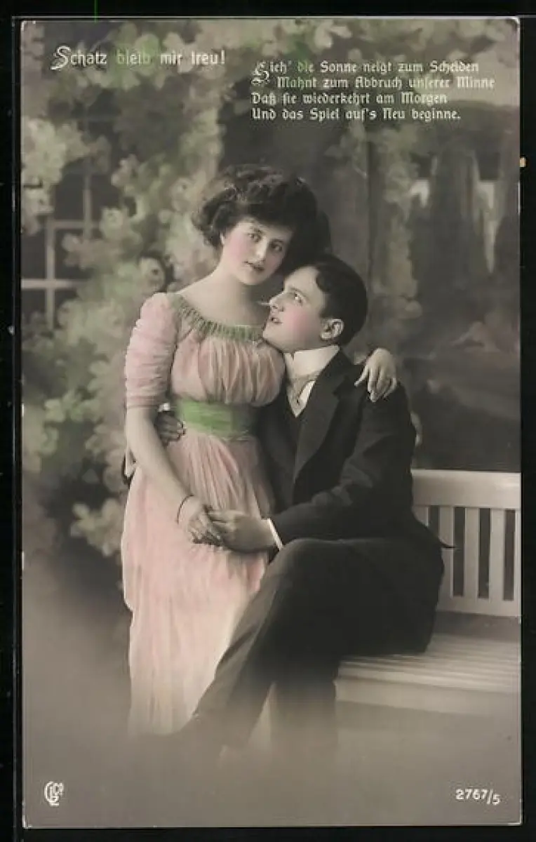 Foto-AK GL Co Nr. 2767/5: Verliebtes Paar auf einer Bank im Park