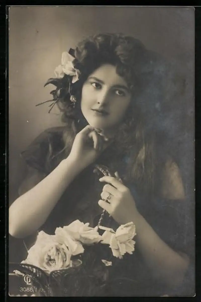 Foto-AK GL Co Nr. 3088/1: Junges Mädchen mit Rose im Haar