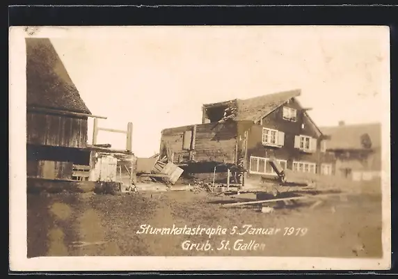Foto-AK Grub, Sturmkatastrophe 5. Januar 1919