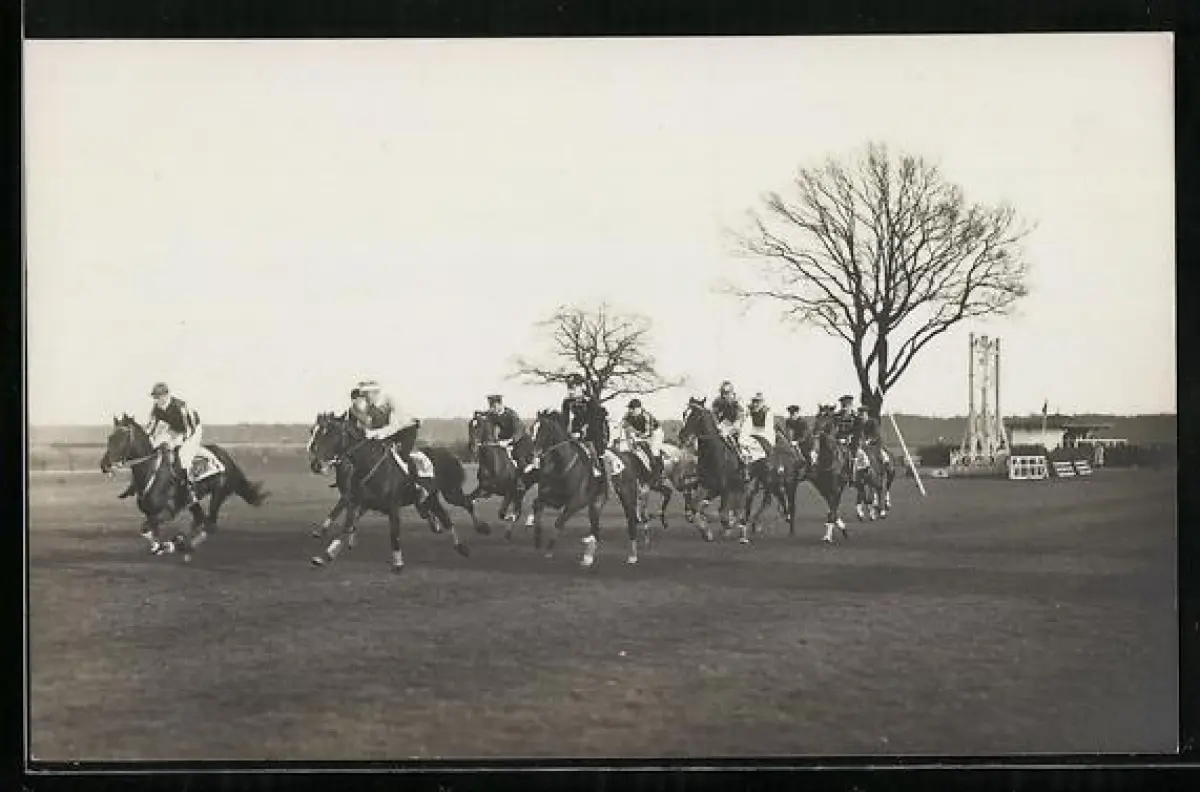 Foto-AK Jockeys auf Pferden beim Rennen auf einem Rennplatz