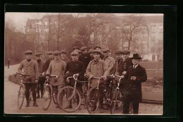 Foto-AK Jungen mit Fahrrädern und Schiebermützen