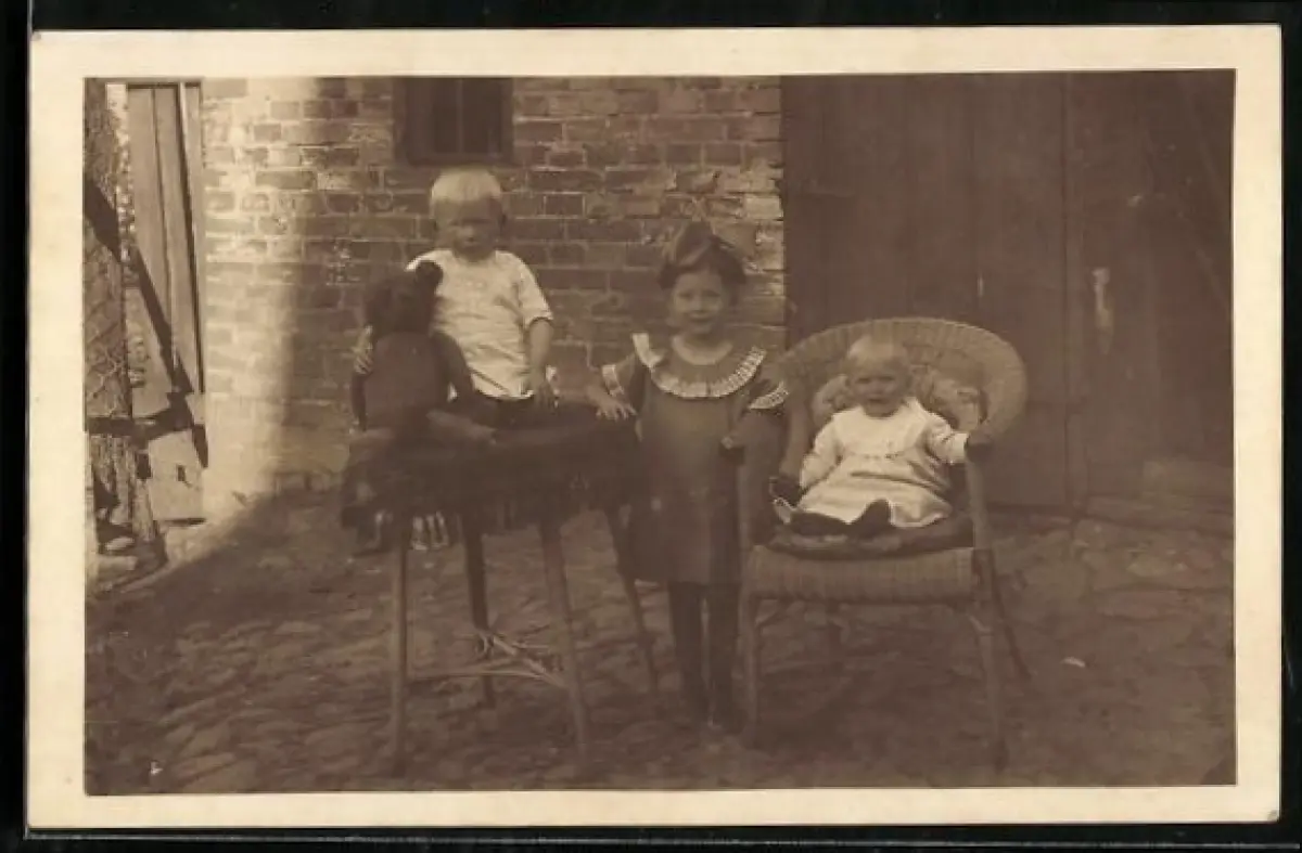 Foto-AK Kinder mit Teddy auf einem Hof, 1927