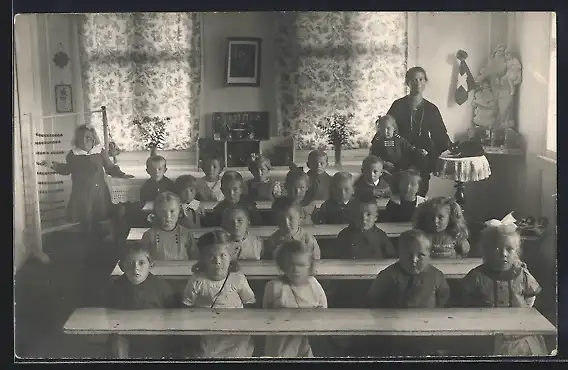 Foto-AK Klassenzimmer mit Rechenschieber