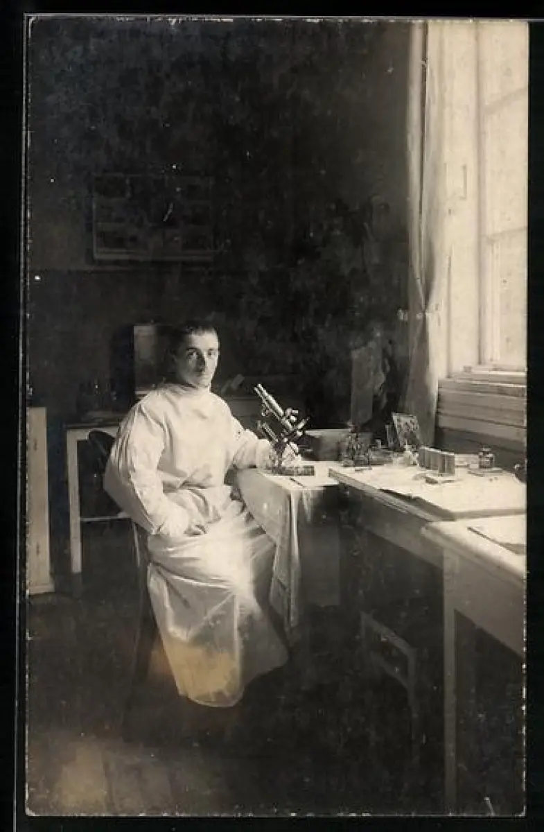 Foto-AK Konstanz a. Bod., Bakteriologemit Mikroskop 1917