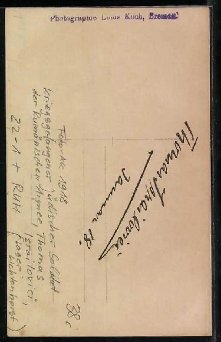 Foto-AK Lager Lichtenhorst, Kriegsgefangener jüdischer Soldat der Rumänischen Armee, Thomas Israilovici