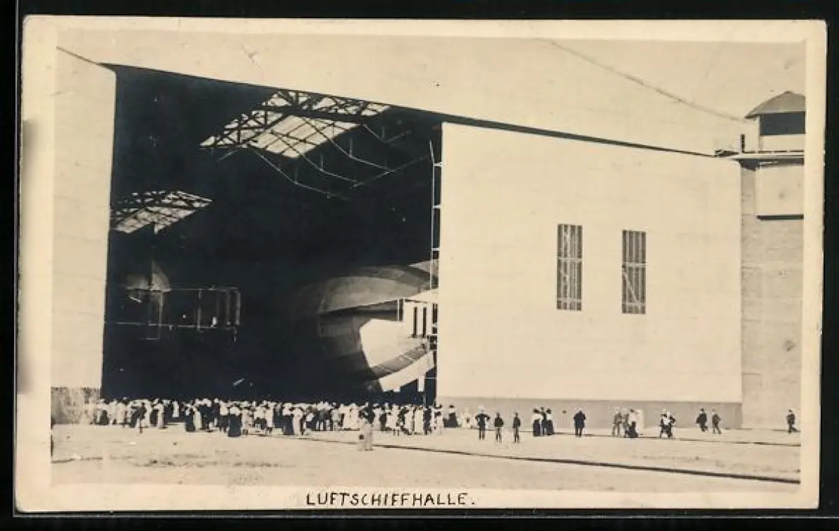Foto-AK Leipzig, Zwei Luftschiffe in der Luftschiffhalle