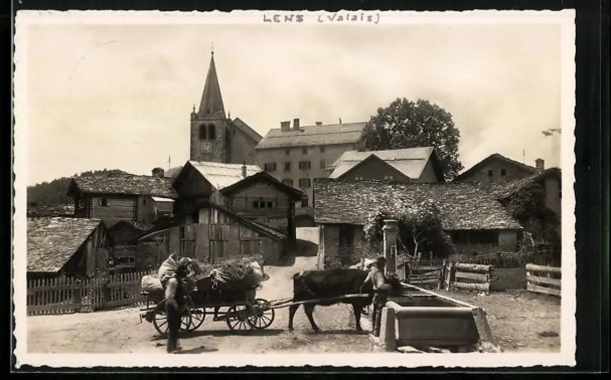 Foto-AK Lens /Valais, Strassenpartie mit Kirche