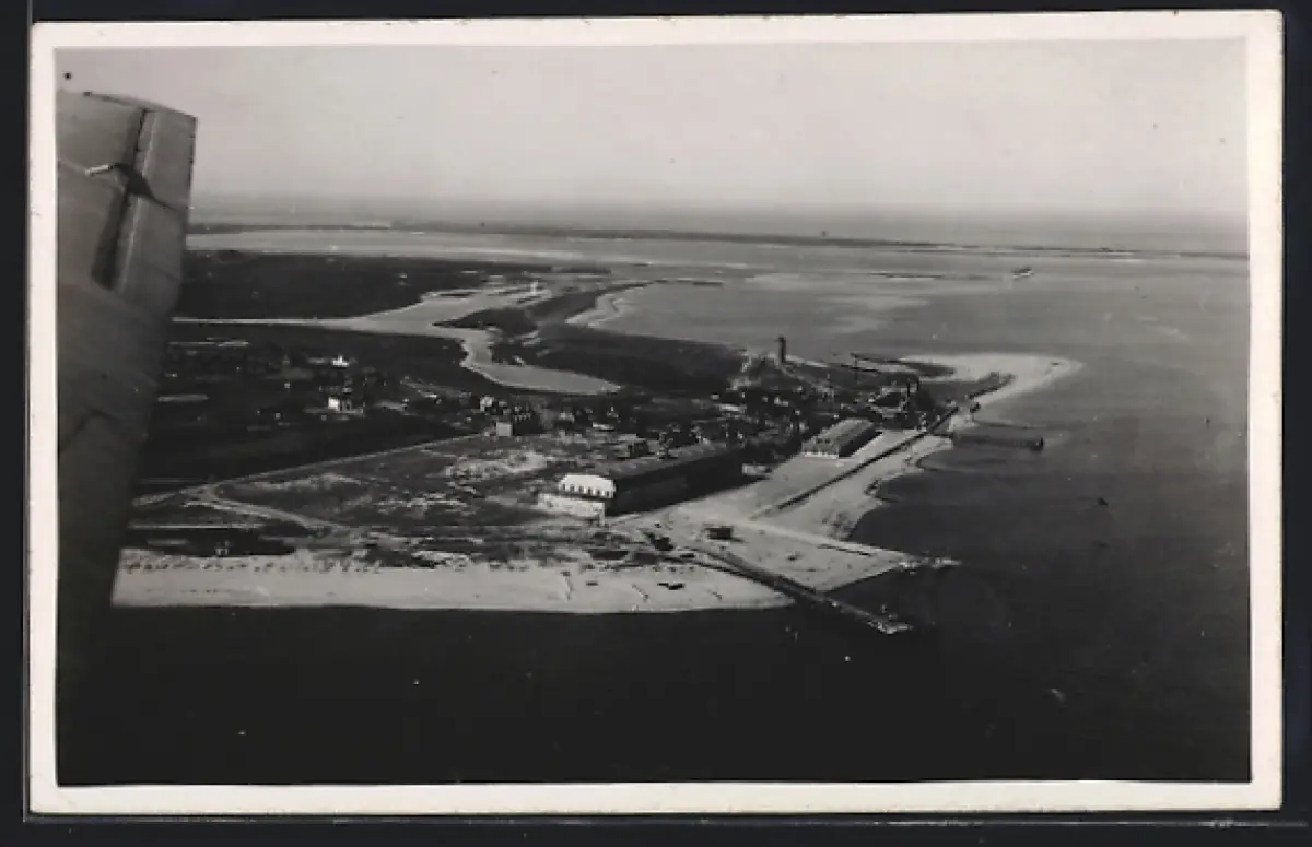Foto-AK List / Sylt, Seeflughafen vom Flugzeug aus