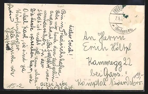 alte Ansichtskarte, gelaufen, Briefmarke entfernt, rückseitig Oberflächenschaden, guter Zustand