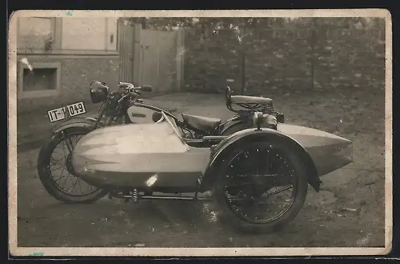 Foto-AK Motorrad Matchless T3 in einem Hinterhof