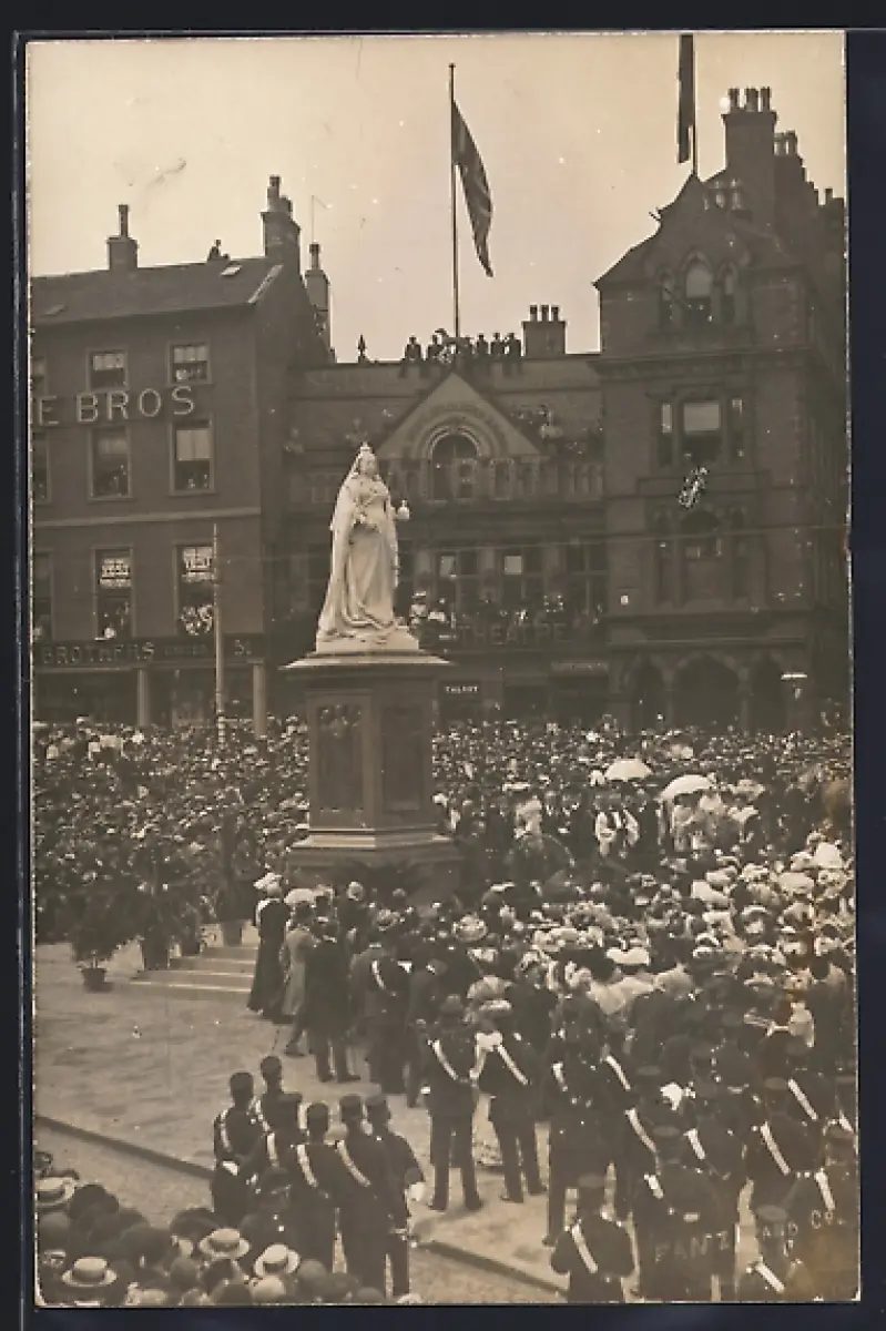 Foto-AK Nottingham, Talbot Theatre, Queen Victoria-Monument