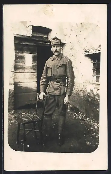 Foto-AK Österreichischer Soldat in Uniform mit Seitenwaffe