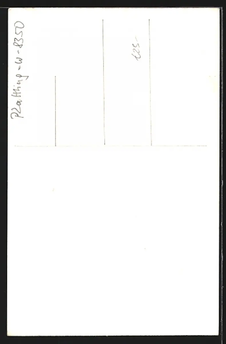 Personenbezogene Daten auf der Rückseite der Karte wurden durch blauen Textmarker unkenntlich gemacht. Die blauen Stellen sind auf die Vorderseite durchgeweicht und wirken sich negativ auf das Postkartenfoto aus