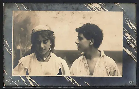 Foto-AK RPH Nr. 101-3067: Junge Frau mit Kopftuch und ein junger Mann