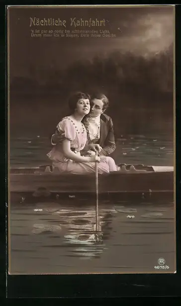 Foto-AK RPH Nr. 4678 /6: Verliebtes Paar bei einer nächtlichen Kahnfahrt